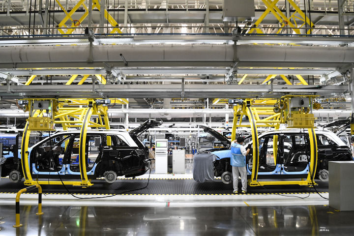 這是在位于重慶市兩江新區(qū)的賽力斯汽車超級(jí)工廠智能化生產(chǎn)作業(yè)現(xiàn)場(2024年6月7日攝)。(新華社記者 王全超/攝)