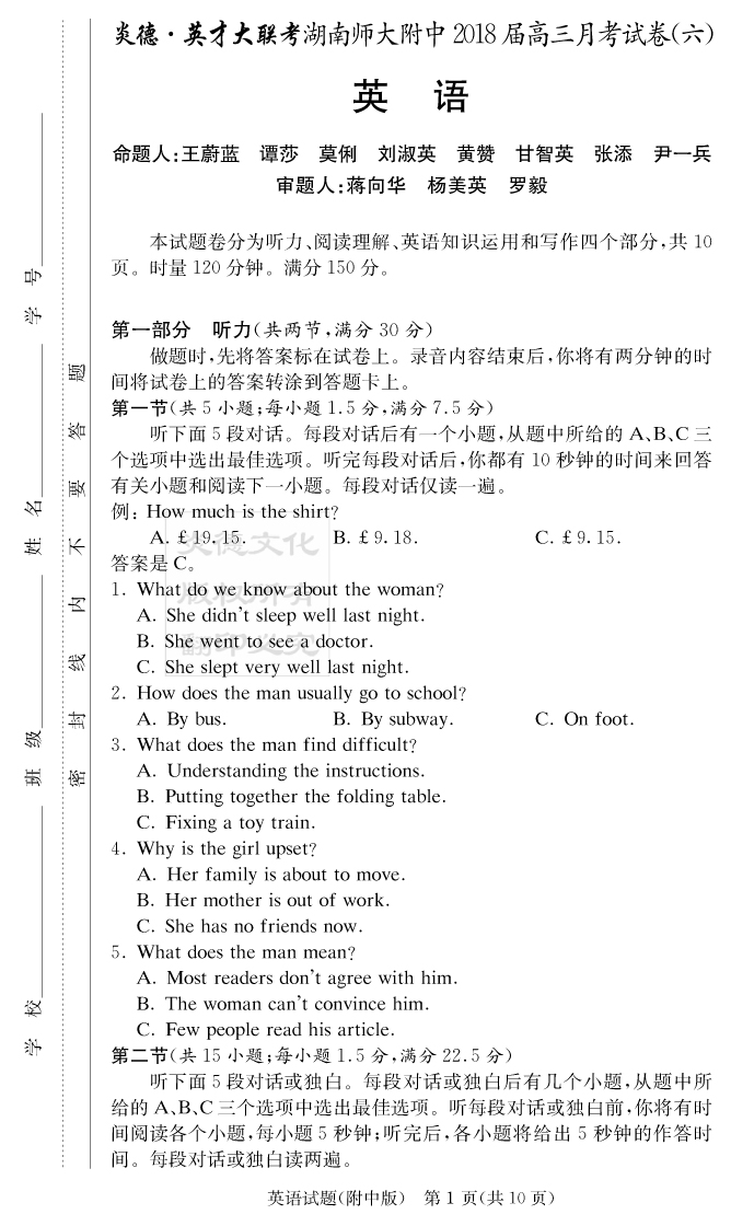 | 資源類別: | 名校月考 | |