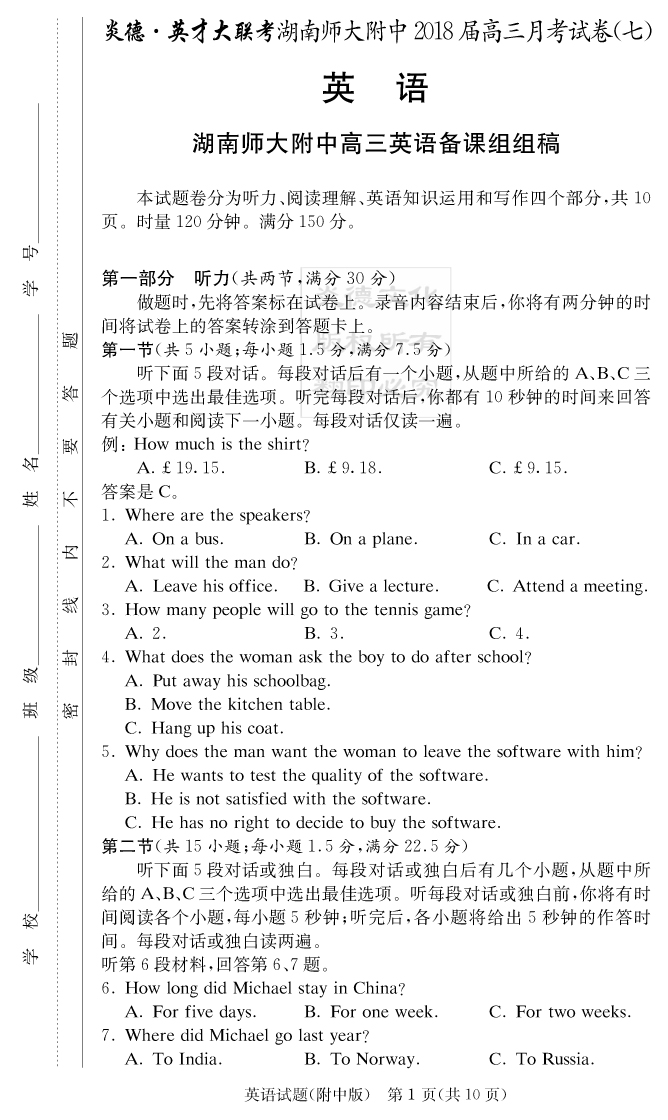 | 資源類別: | 名校月考 | |