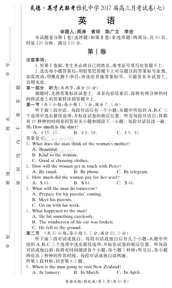 | 資源類別: | 名校月考 | |