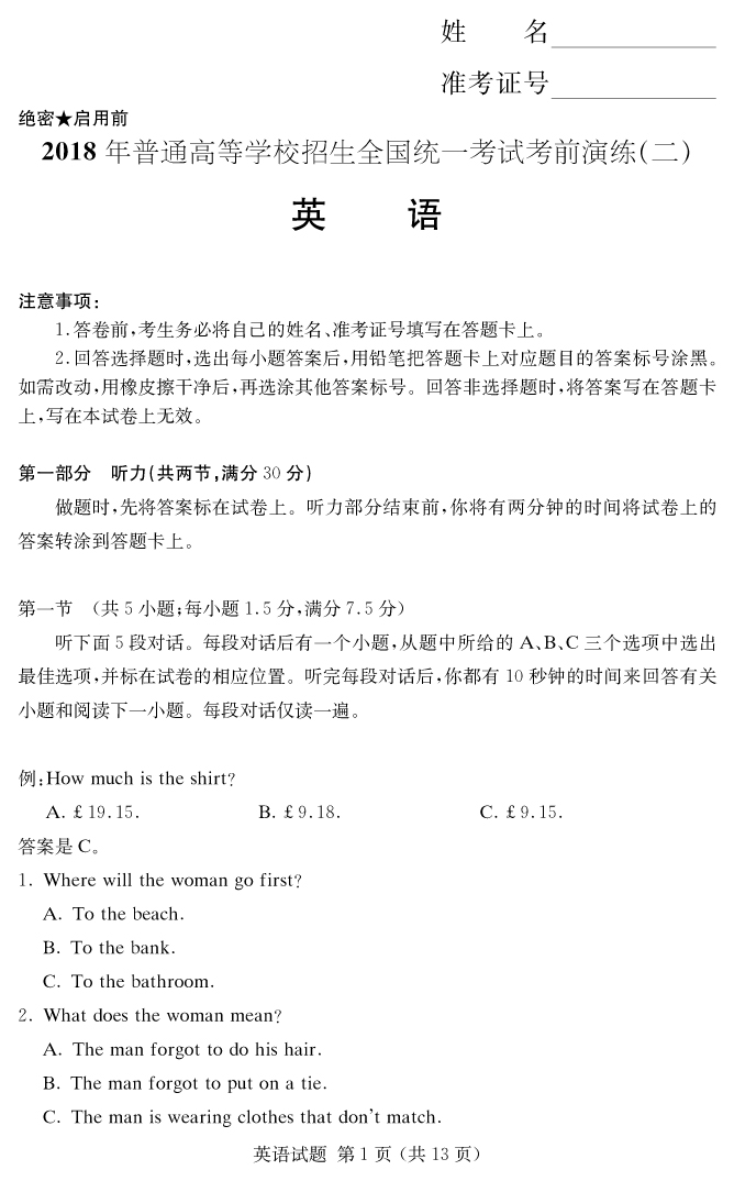 下一篇:【語文】2018年普通高等學校招生全國統(tǒng)一考試考前演練(二)