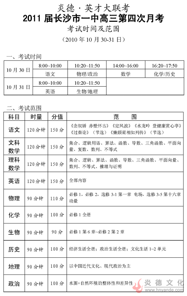 上一篇:炎德英才大聯(lián)考長沙市一中2011屆高三第三次月考考試時間和范圍