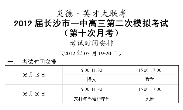 下一篇:炎德英才大聯(lián)考長沙市一中2012屆高三第三次模擬(一中壓軸卷)考試時(shí)間和范圍