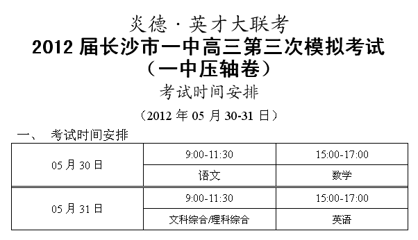 上一篇:炎德英才大聯(lián)考長沙市一中2012屆高三第二次模擬(第十次月考)考試時(shí)間和范圍