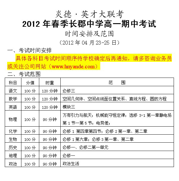 上一篇:2012春季長郡中學(xué)高一期末考試時(shí)間及范圍