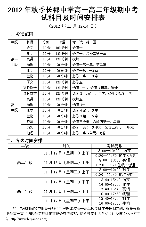 下一篇:2012年秋季長郡中學(xué)高一高二期末考試范圍時(shí)間安排(2013.01.20-23)