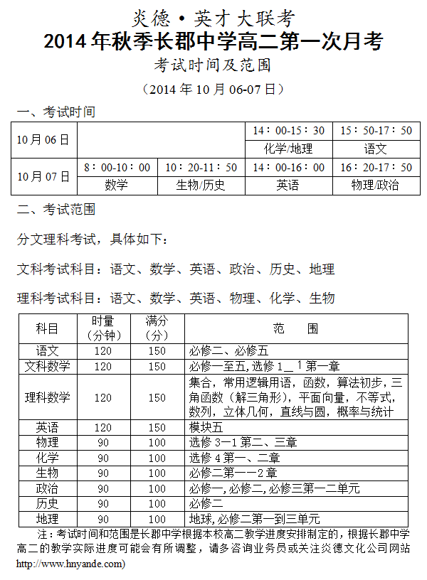 下一篇:炎德英才大聯(lián)考2014年秋季長郡中學(xué)高二期中考試時間和范圍(2014.11.10-12)