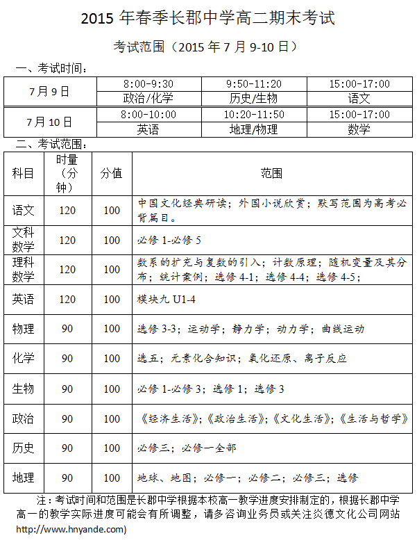 上一篇:2015春季長郡中學高二學業(yè)水平考試仿真模擬試卷二考試時間安排(2015年6月3-4日)