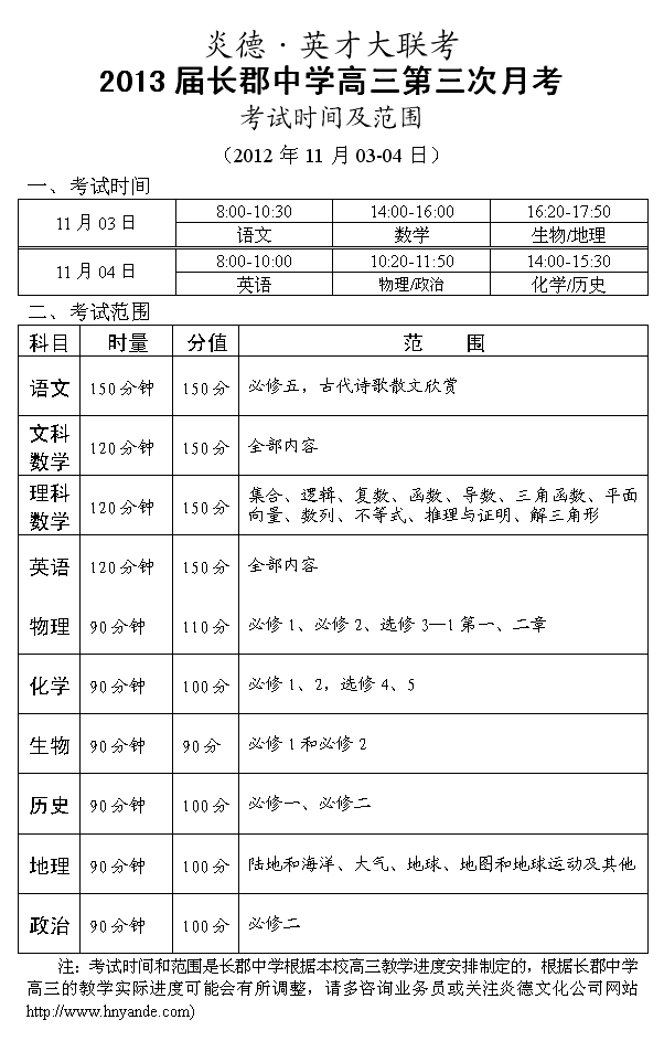 來源:炎德文化點擊:2012-10-25 15:08:26收藏本文當前位置:考試范圍 長郡中學 高三 正文