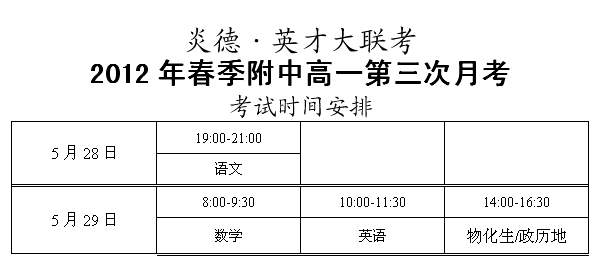 下一篇:2013年春季師大附中高一月考時間范圍訂單(2013.03-07)