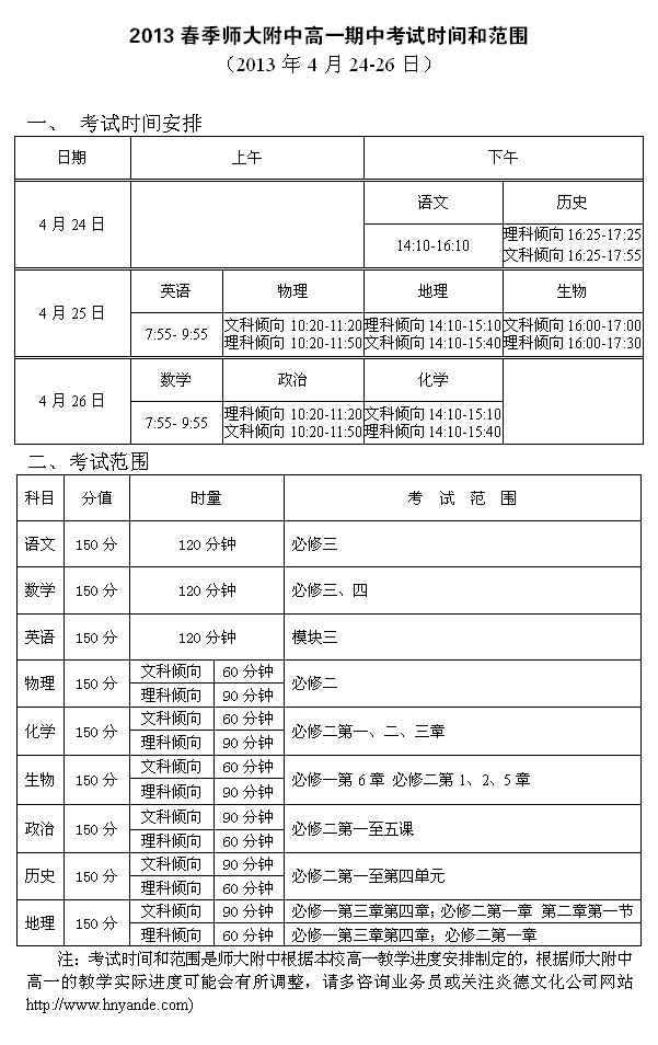 上一篇:2013春季師大附中高一第一次考試時(shí)間和范圍(2013年3月22-24日)