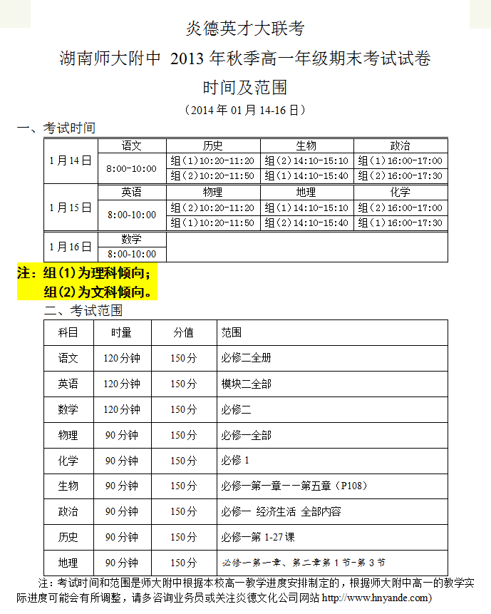 來源:炎德文化點擊:2013-12-20 09:14:04收藏本文當(dāng)前位置:考試范圍 師大附中 高一 正文