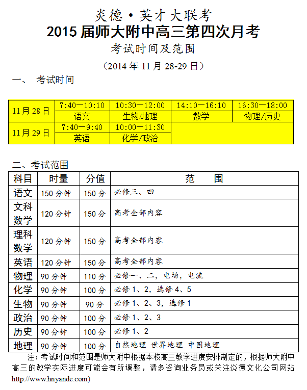 上一篇:炎德英才大聯(lián)考師大附中2015屆高三第3次月考考試時間和范圍(2014.10.31-11.01)