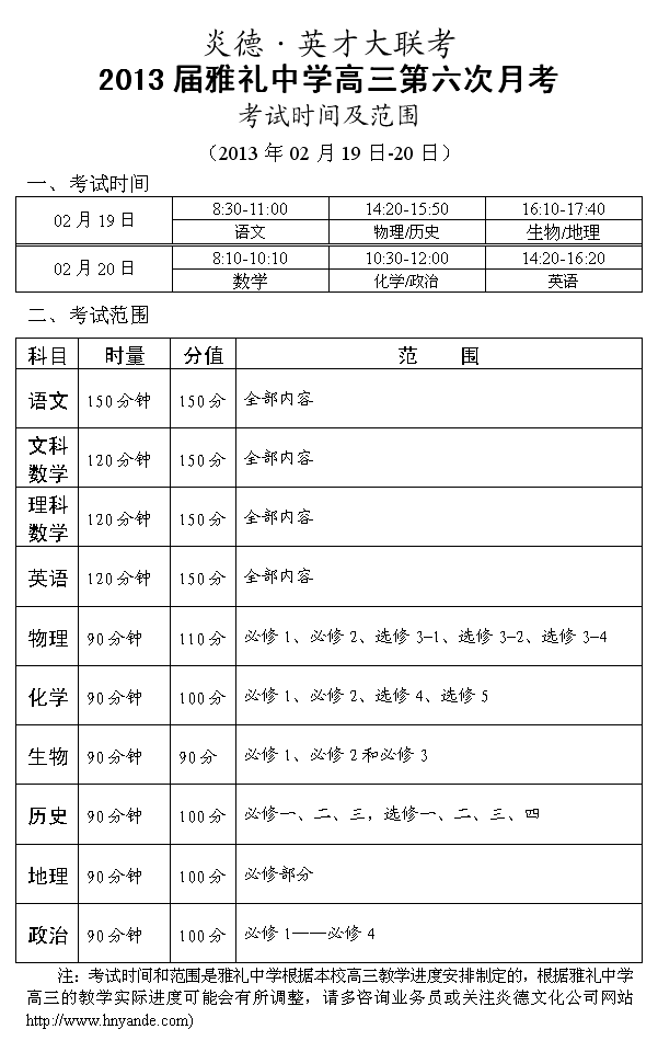來源:炎德文化點擊:2013-02-19 17:31:22收藏本文當前位置:考試范圍 雅禮中學 高三 正文