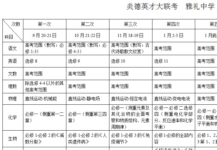 炎德英才大聯(lián)考雅禮中學(xué)2014屆高三月考試卷考試時(shí)間和范圍(第1-10次)