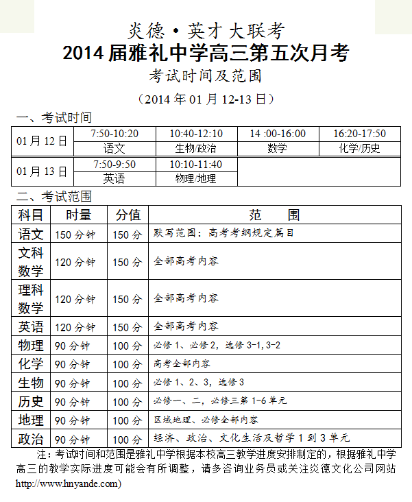 上一篇:炎德英才大聯(lián)考雅禮中學2014屆高三第4次月考考試時間和范圍(2013.12.19-20)