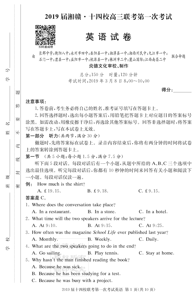 | 資源類別: | 名校月考 | |