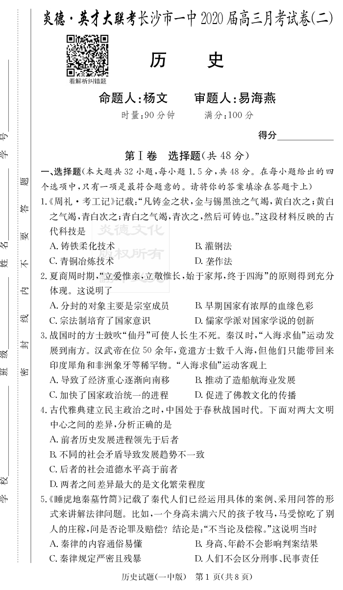 | 資源類別: | 名校月考 | |