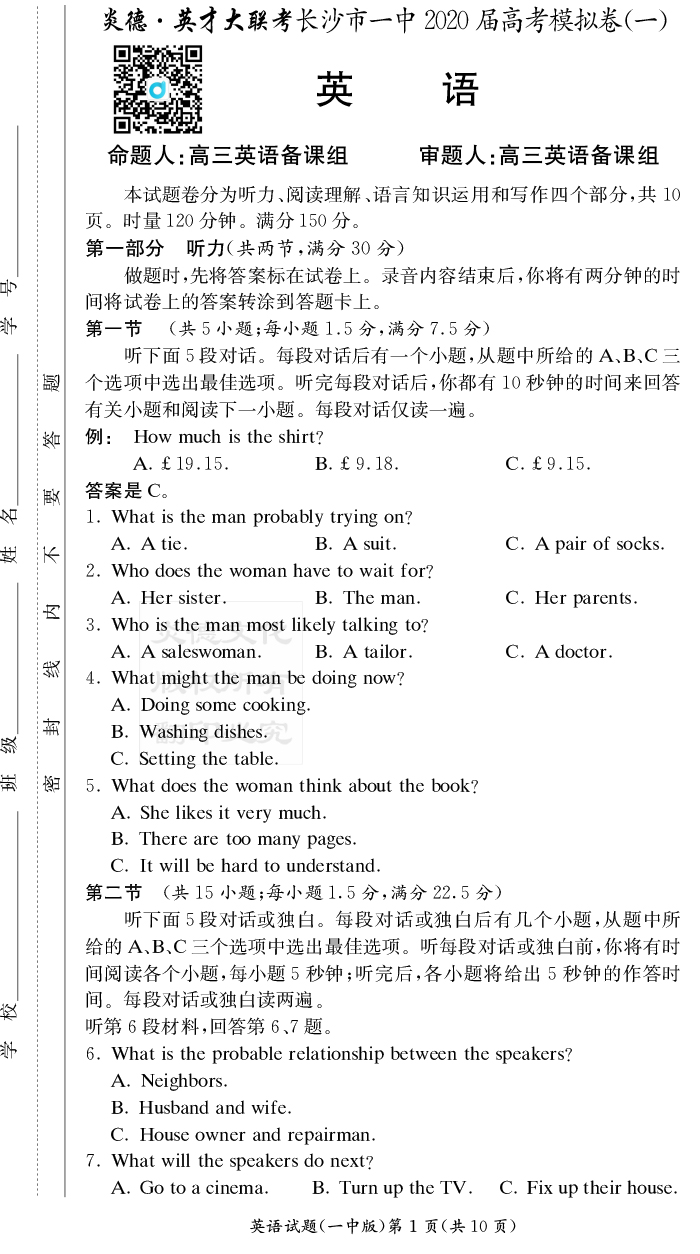 | 資源類別: | 名校月考 | |