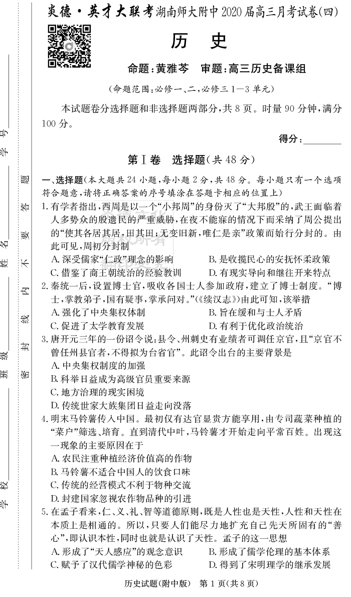 2025名師導學·名校名卷經(jīng)典試題匯編·歷史