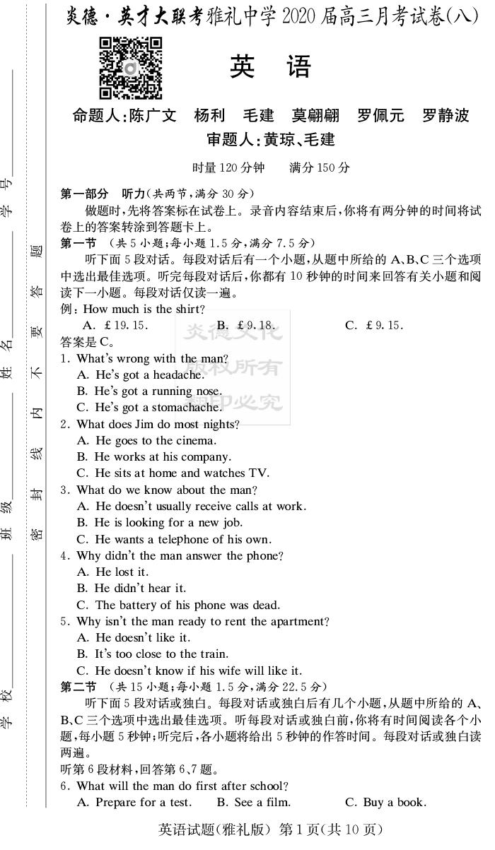 | 資源類別: | 名校月考 | |