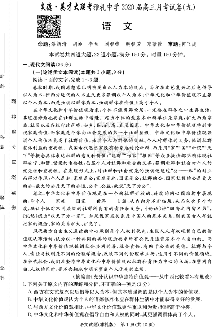 2026高考總復習單元同步滾動測試卷·語文