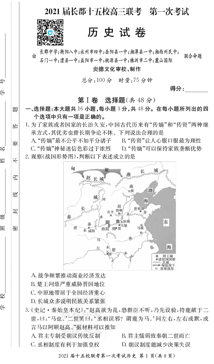 上一篇:【化學(xué)】炎德英才大聯(lián)考2021屆長郡中學(xué)高三7次月考(十五校聯(lián)考一)