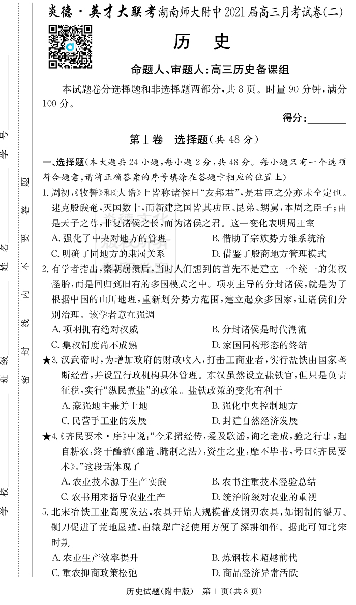 | 資源類別: | 名校月考 | |