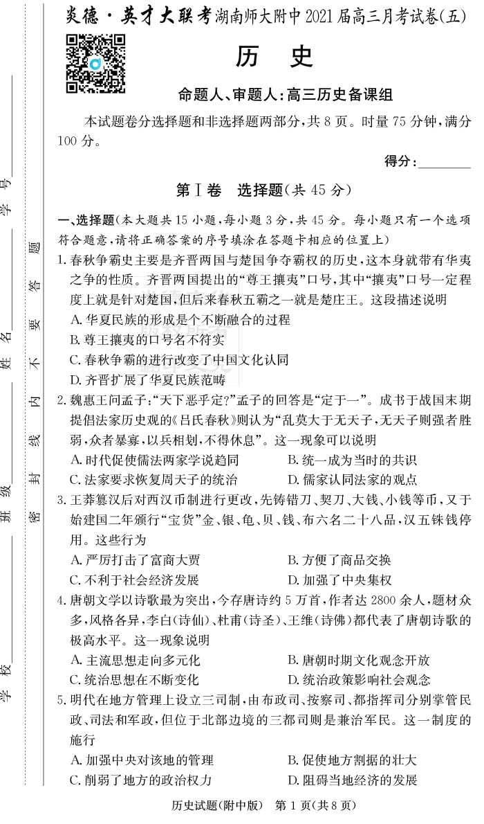 2025名師導學·名校名卷經典試題匯編·歷史