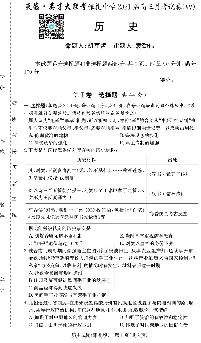 | 資源類別: | 名校月考 | |