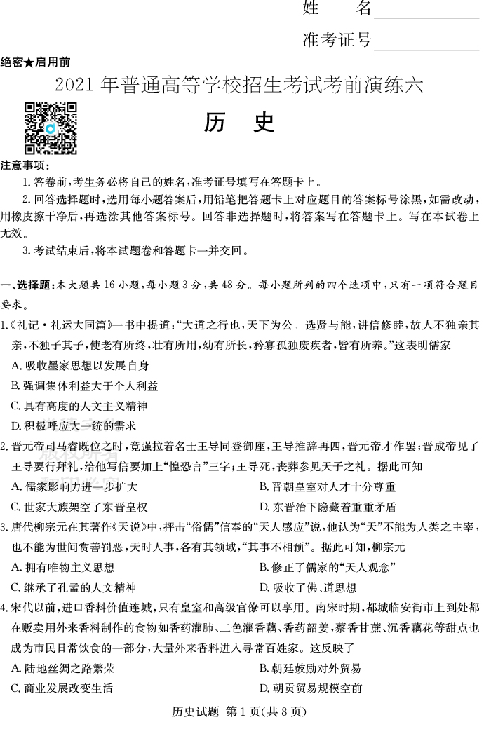 2025名師導學·名校名卷經(jīng)典試題匯編·歷史