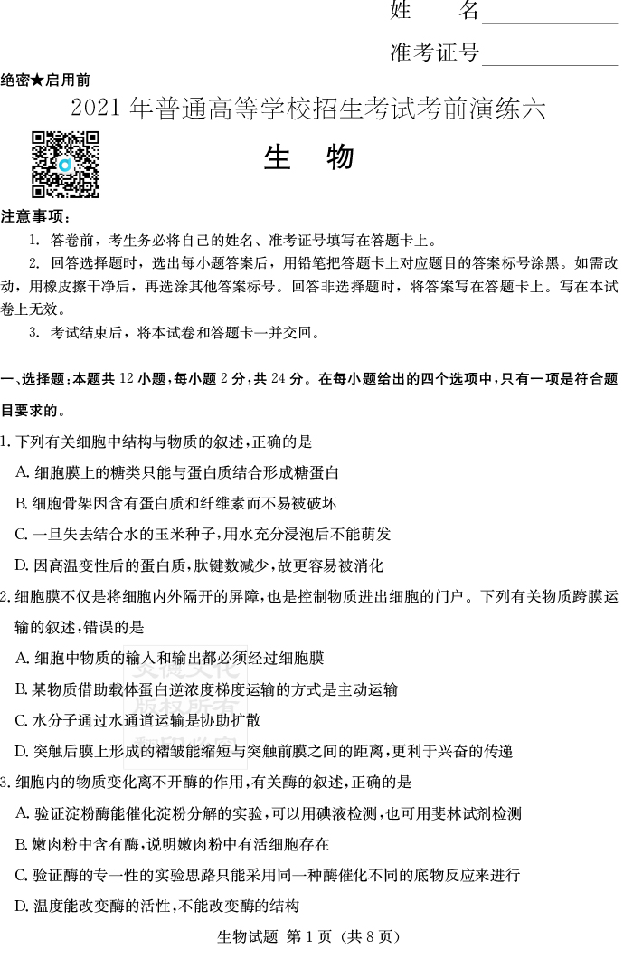 上一篇:【歷史】2021年普通高等學校招生全國統(tǒng)一考試考前演練(六)
