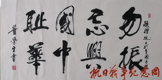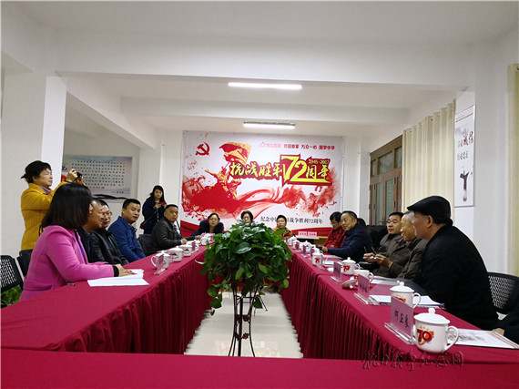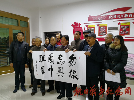 長沙市關(guān)工委主任董學(xué)生為抗日戰(zhàn)爭圖書館題字(前排左起:唐得之、董學(xué)生、何譽軍)
