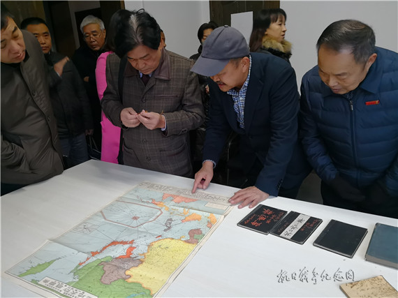 長沙市抗戰(zhàn)文化研究會會長、抗日戰(zhàn)爭紀(jì)念網(wǎng)主編、抗日戰(zhàn)爭圖書館館長何譽軍(右二)向長沙市關(guān)工委主任董學(xué)生(右三)等介紹抗日戰(zhàn)爭圖書館館藏資料