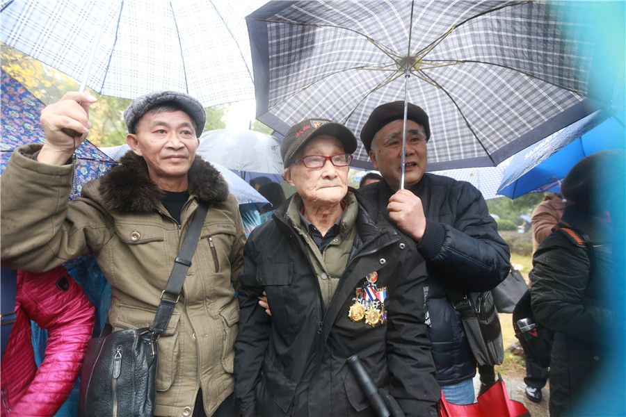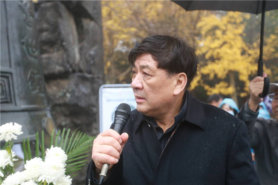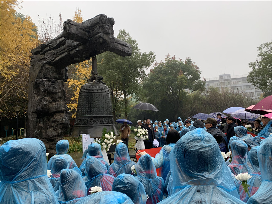 12月13日上午十點(diǎn),長(zhǎng)沙市抗戰(zhàn)文化研究會(huì)發(fā)起的緬懷抗戰(zhàn)英烈和悼念文夕大火罹難平民儀式在天心公園警世鐘下舉行。參加舉辦本次活動(dòng)的還有深圳市龍?jiān)酱壬苹饡?huì)、湖南省黃埔軍校同學(xué)會(huì)、長(zhǎng)沙市黃埔后裔聯(lián)誼會(huì)、長(zhǎng)沙天心閣公園管理處、抗日戰(zhàn)爭(zhēng)紀(jì)念網(wǎng)、抗日戰(zhàn)爭(zhēng)圖書館、星城實(shí)驗(yàn)三小(中嶺小學(xué))、長(zhǎng)郡月亮島第二小學(xué)、長(zhǎng)沙關(guān)愛抗戰(zhàn)老兵志愿服務(wù)隊(duì)、長(zhǎng)沙關(guān)愛抗戰(zhàn)老兵秋天班、湖南炎德文化實(shí)業(yè)有限公司、湖南炎德文化實(shí)業(yè)有限公司黨支部。參加活動(dòng)的嘉賓還有原湖南省政協(xié)副主席、中國國民黨革命委員會(huì)第十二屆中央委員會(huì)委員劉曉、抗戰(zhàn)老兵陳忠民、房可吉。共有上述舉辦單位的領(lǐng)導(dǎo)、志愿者、學(xué)生、老師、黃埔后裔以及市民共計(jì)三百余人冒雨參加了本次活動(dòng)!
