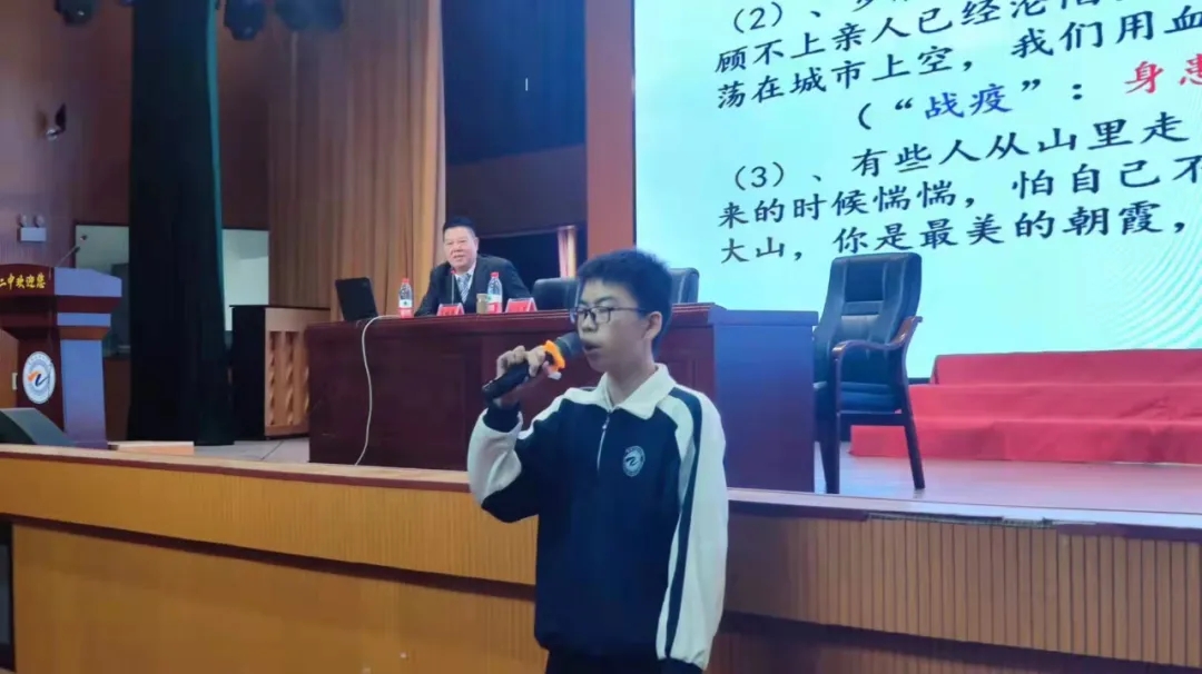 講座伊始,主持人劉滿和副校長(zhǎng)向全體師生介紹了本次講座的主講人馬繼德老師:馬繼德老師是長(zhǎng)郡中學(xué)特聘高中語(yǔ)文研究員,長(zhǎng)郡中學(xué)清北班培訓(xùn)專家,組大組長(zhǎng),省、市高級(jí)教師評(píng)審專家?guī)煸u(píng)委。1994年、1997年先后被市級(jí)、省級(jí)職稱評(píng)審委員會(huì)破格晉升為中學(xué)一級(jí)、中學(xué)高級(jí)語(yǔ)文教師,是長(zhǎng)沙市2010年首批晉升的中學(xué)五級(jí)教師。曾獲創(chuàng)新杯及葉圣陶杯全國(guó)一等獎(jiǎng)優(yōu)秀指導(dǎo)教師、市級(jí)教學(xué)比武一等獎(jiǎng)、市級(jí)十佳教師、縣級(jí)勞動(dòng)模范等榮譽(yù),是全國(guó)及省中語(yǔ)會(huì)授予的作文教學(xué)優(yōu)秀教師。在省級(jí)、國(guó)家級(jí)報(bào)刊上公開(kāi)發(fā)表論文數(shù)十篇,有省級(jí)一等獎(jiǎng)結(jié)題課題,撰寫(xiě)高考輔導(dǎo)書(shū)籍二百萬(wàn)余字。近幾年在安徽、江西、湖南、廣東、廣西、湖北等省市縣完成高考備考講座百余場(chǎng),應(yīng)邀在懷化、婁底、郴州、岳陽(yáng)、常德、邵陽(yáng)、永州、湘西、長(zhǎng)沙、玉林、柳州、池州、荊州、赤壁、武漢、湖南師范大學(xué)等地完成市級(jí)、省級(jí)教師培訓(xùn)或高三復(fù)習(xí)研討會(huì)講座30余場(chǎng)。每一種卓越身份,每一項(xiàng)高光榮譽(yù),每一個(gè)沉甸甸的成就,都昭示著這場(chǎng)講座的含金量。在熱烈的掌聲中,身著正裝、神采飛揚(yáng)、風(fēng)度翩翩的馬老師開(kāi)始為時(shí)兩個(gè)小時(shí)的講座。