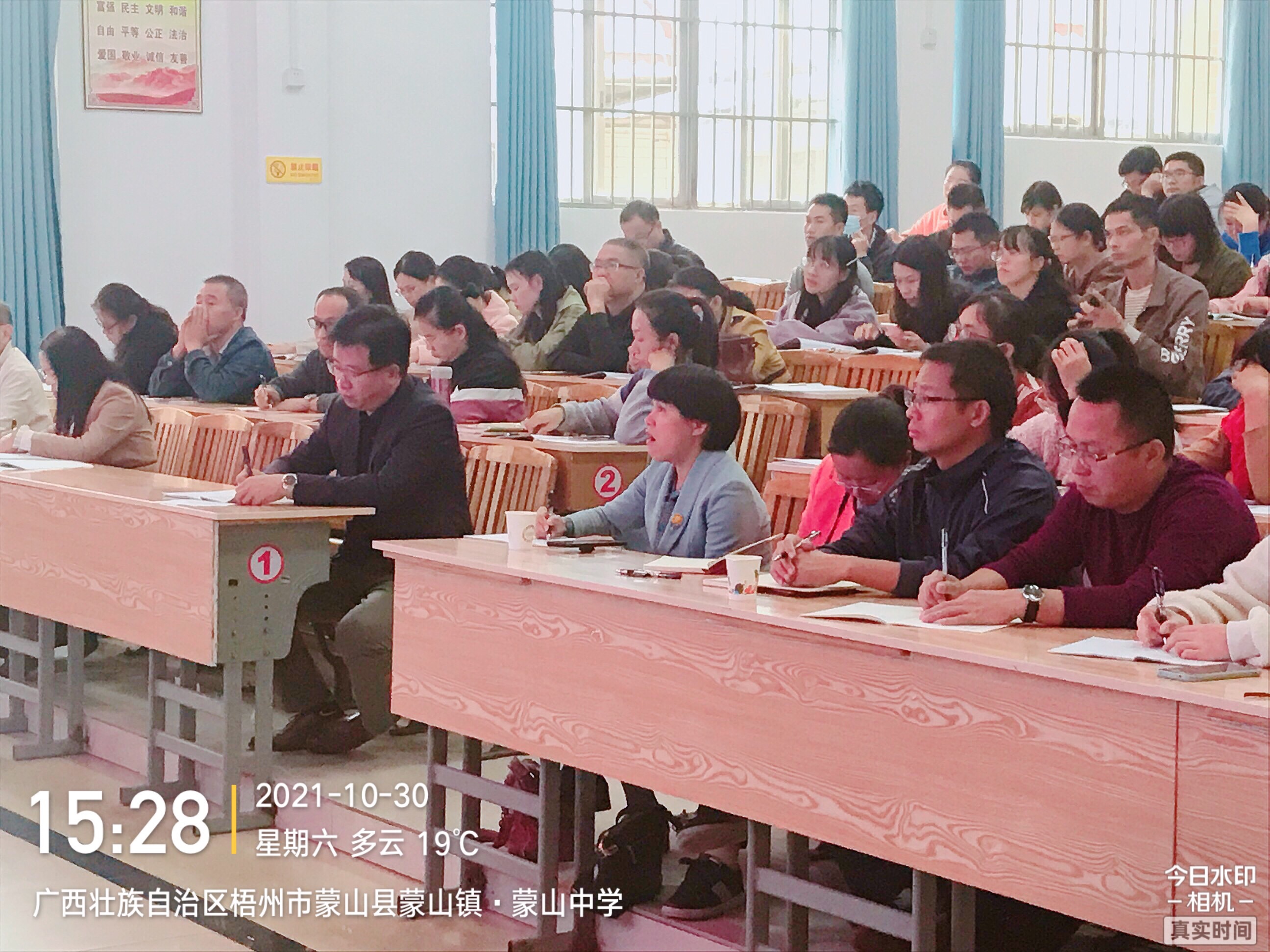 鹿寨中學(xué)全校80多名高一老師認(rèn)真聽課,做筆記。