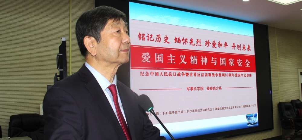 為紀念中國人民抗日戰(zhàn)爭暨世界反法西斯戰(zhàn)爭勝利80周年,弘揚偉大抗戰(zhàn)精神,深化青少年愛國主義教育,湖南炎德文化實業(yè)有限公司、抗日戰(zhàn)爭紀念網(wǎng)、抗日戰(zhàn)爭圖書館、長沙市抗戰(zhàn)文化研究會決定聯(lián)合主辦“銘記歷史 緬懷先烈 珍愛和平 開創(chuàng)未來”愛國主義教育講座,邀請中國人民解放軍軍事科學研究院研究員姜春良少將主講《愛國主義和國家安全》。