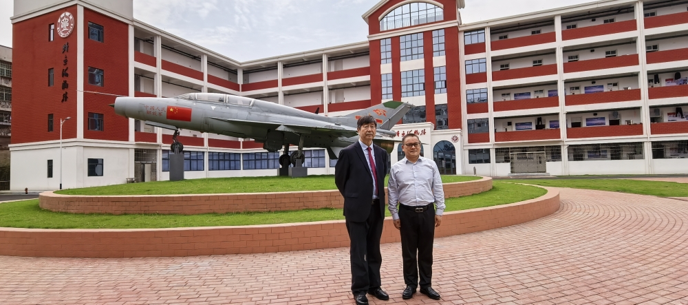 講座結束后,湘潭縣第一中學黨委書記齊學軍、黨委副書記、校長唐樂軍、肖榮、郭良玉等熱情接待了姜春良將軍一行,陪同大家參觀了校園和海航樓。湘潭縣第一中學創(chuàng)辦于1946年,校園占地16.23萬平方米,建筑面積12.69萬平方米。學校秉承“剛勁、務實、敢為人先”的湖湘精神,銳意進取,積淀了深厚的辦學底蘊;擁有湘潭大學、湖南科技大學、湖南工程學院等全國重點高校豐富的教學科研資源。學校取得了豐碩的辦學成果:學校是湖南省示范性普通高級中學、湖南省海軍青少年航空學校、全國文明校園、全國五四紅旗團委、全國青少年校園足球特色學校、全國青少年校園籃球特色學校、全國國防教育特色學校、中國百強中學、湖南省首屆魅力校園,也是全省同時榮膺清華、北大直薦學生資質的六所高級中學之一,二十多年來持續(xù)領跑湘潭教育。