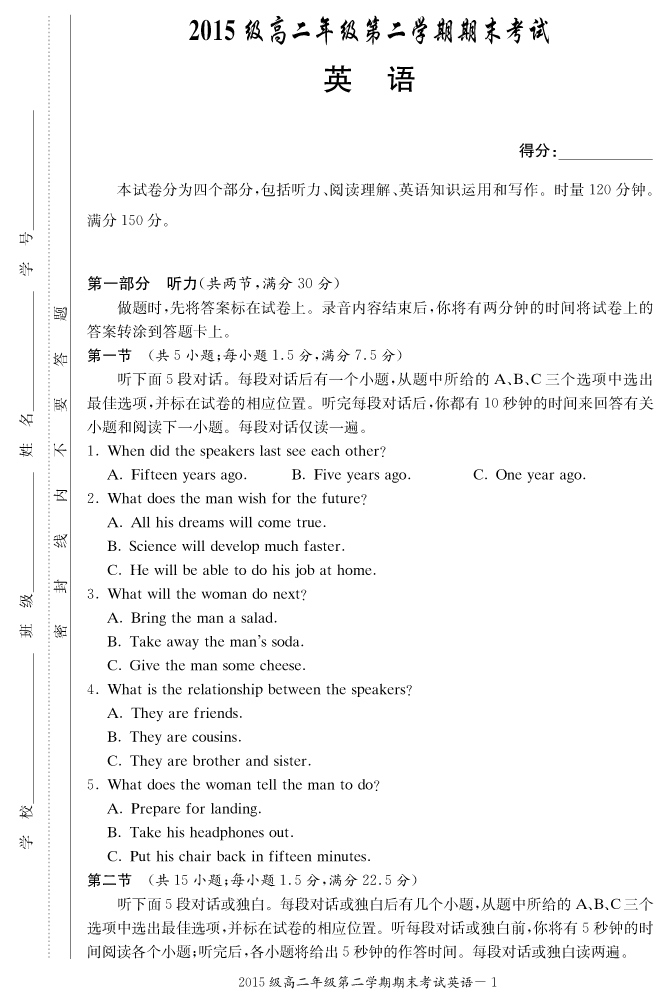 2026高考總復習單元同步滾動測試卷·英語